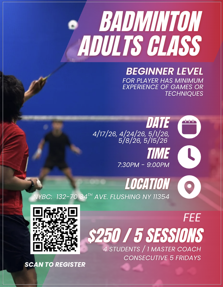LEVEL: Beginner = minimum badminton skills, just start getting into the sport. Need fundamental lesson for basic footwork, clears, serve, etc. Entry level.